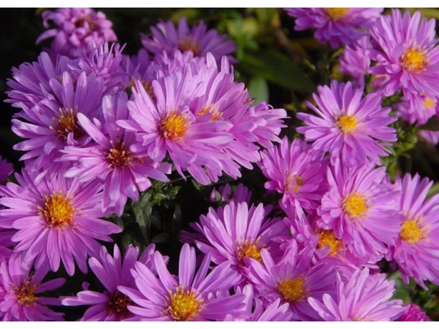 Késő nyártól egészen őszig hozza tömegesen a kis, margarétaszerű virágokat, amelyek élénk rózsaszín színűek, sárga középpel. Jó körülmények között annyira bőven virágzik, hogy szinte teljesen beborítja a bokrot. Emellett fontos nektárforrás a méhek és más beporzók számára az őszi időszakban.