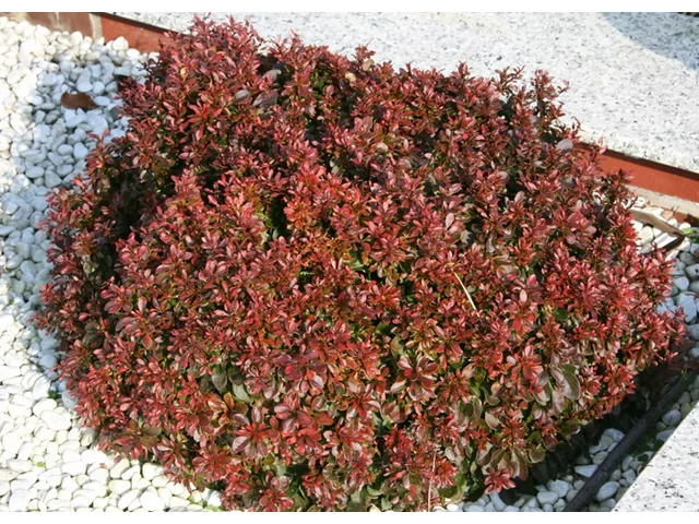 Május körül apró, sárga virágokat hoz, amelyek a levelek között jelennek meg. A virágzás után piros bogyótermések fejlődnek rajta, amelyek ősszel érnek be, és gyakran télen is a bokron maradnak. Napos vagy félárnyékos helyen fejlődik a legszebben, és a jó vízáteresztő talajt kedveli, de alapvetően igénytelen és jól alkalmazkodó növény. Jól tűri a városi környezetet, a szárazságot és a metszést is, ezért gyakran ültetik alacsony sövénynek, szegélynövénynek vagy sziklakertbe. Fagytűrő, gondozása egyszerű, betegségekkel és kártevőkkel szemben viszonylag ellenálló.