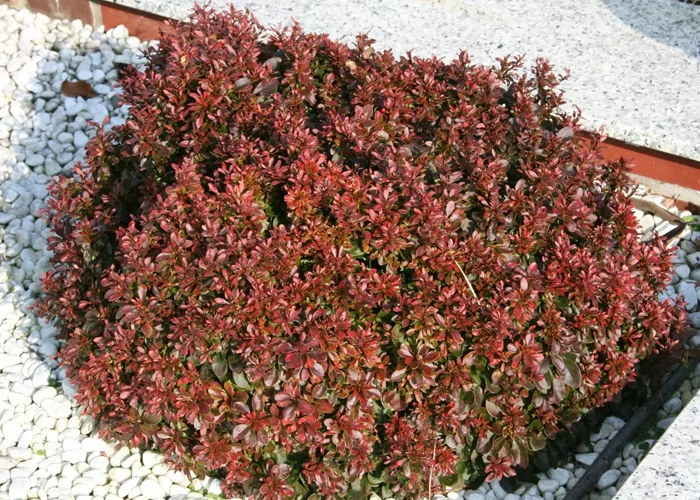 A Berberis thunbergii Atropurpurea Nana / Japán vérborbolya törpe egy alacsony növekedésű, lombhullató díszcserje, amely a japán borbolya törpe változata. Bokra sűrű, tömött, gömbölyded formájú, általában 40–60 cm magasra és körülbelül 60–80 cm szélesre nő. Ágain apró, éles tövisek találhatók. Levelei kicsik, tojásdad alakúak, színük sötétbordó vagy lilásvörös, amely a vegetációs időszakban végig megmarad, ősszel pedig még élénkebb vörös árnyalatúvá válik.