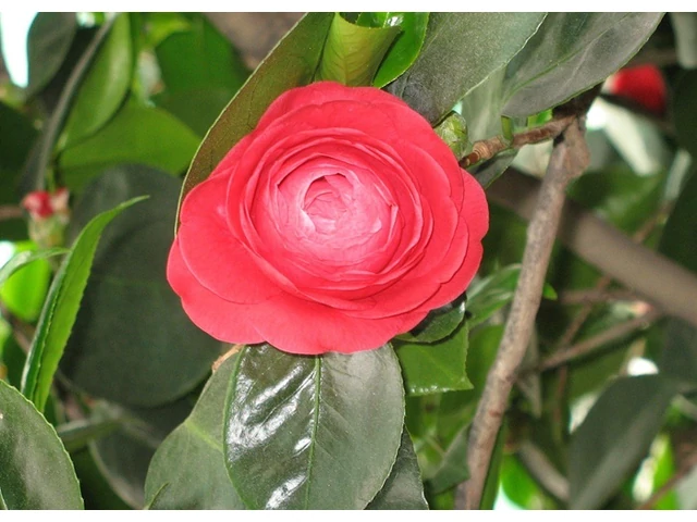 A Camellia japonica 'Mathotiana' egy különlegesen elegáns, örökzöld díszcserje, amelynek sötétzöld, fényes és bőrszerű levélzete egész évben sűrű, dekoratív lombozatot alkot. A növény legfőbb ékessége a látványos virágzata, amely hatalmas, akár 12 centiméteres, szabályosan telt, mélyvörös virágokból áll; ezek a szirmok néha finom lilás árnyalatot kapnak, ami antik hatást kölcsönöz nekik. A virágzási ideje jellemzően a tél végére és a kora tavaszra, azaz február és április közé esik, így az elsők között hoz színt a kertbe.
