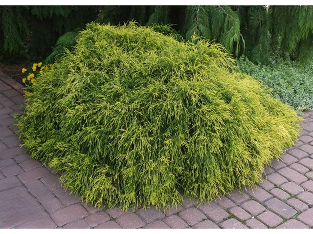A Chamaecyparis Pisifera Filifera Aurea Nana / Fonalas szavára törpe hamisciprus sárga egy alacsony, lassú növekedésű, örökzöld díszfenyő, amely idővel körülbelül 60–100 cm magasra nő, és inkább széles, párnaszerű bokrot képez. Különlegessége a vékony, fonalszerűen lecsüngő hajtásaiban rejlik, amelyek laza, kissé csüngő hatást adnak a növénynek, ettől nagyon elegáns, finom megjelenésű.