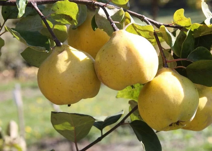 Gyümölcse szabályos, gömbölyű, középnagy, felülete mérsékelten bordás. Héja ragyogó, világos, aranysárga színű, igen tetszetős. Csészéje kicsi, csészemélyedése erős. Kemény húsa sárgásfehér, illatos, közepesen zamatos, gyengén kövecses.