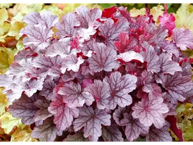 A Heuchera hybrida Milan / Ezüstös-bordó tűzeső egy alacsony növekedésű, dekoratív évelő növény a Saxifragaceae családból. Körülbelül 20–30 cm magasra nő, virágzattal együtt pedig kb. 40–45 cm lehet. Levelei kerekdedek, enyhén karéjosak, ezüstös alapon rózsaszínes árnyalatúak sötétebb erezettel, ami különleges megjelenést ad a növénynek.