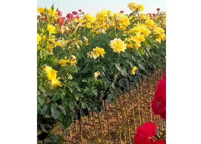 Ültetés: A magastörzsű rózsatöveket 100×100 cm-es térállásba telepítjük. Ültetés után kikarozzuk.