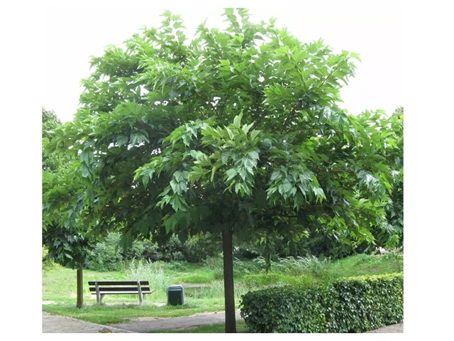 A fa habitusa középerős vagy erőteljes növekedésű, kedvező körülmények között akár 10–15 méter magasra is megnő, széles, terebélyes koronát fejlesztve. A törzse idővel vastagodik, kérge barnásszürke, idősebb korban repedezetté válik. A hajtásai fiatalon zöldek, később barnulnak, és a korona sűrű, árnyékot adó lombozatot alkot.