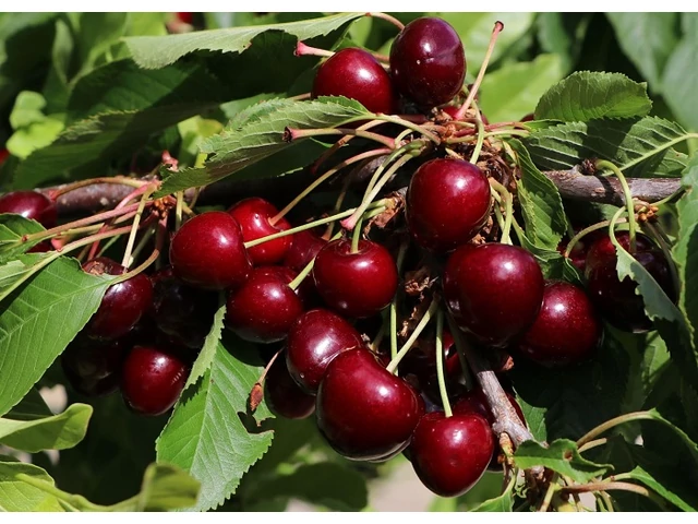 A Prunus avium Karina / Karina cseresznye júniusban terem. Gyümölcse nagy kerek, sötétvörös, közepesen kemény, édes és lédús hús.